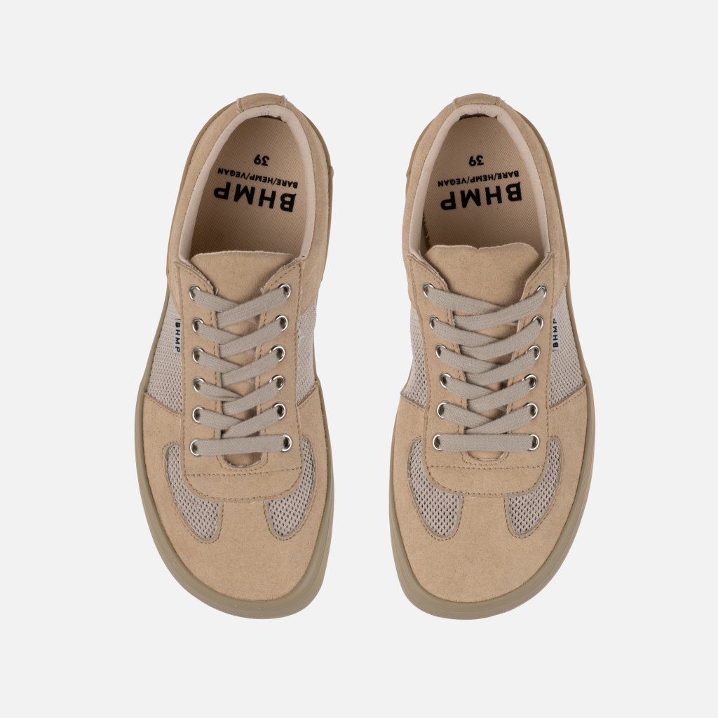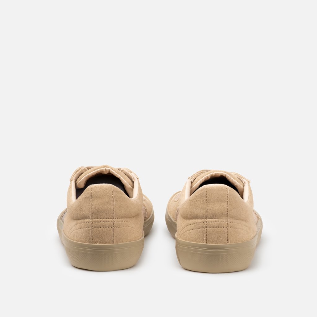 FALKO combines a clean urban look with breathable comfort for warm days. Its lightweight design makes it easy to pair with everyday outfits — from jeans and shorts to relaxed summer styles. The upper blends vegan suede made from recycled plastic with airy mesh panels that help keep your feet fresh throughout the day. Perfect when you want the protection of closed shoes without sacrificing breathability.